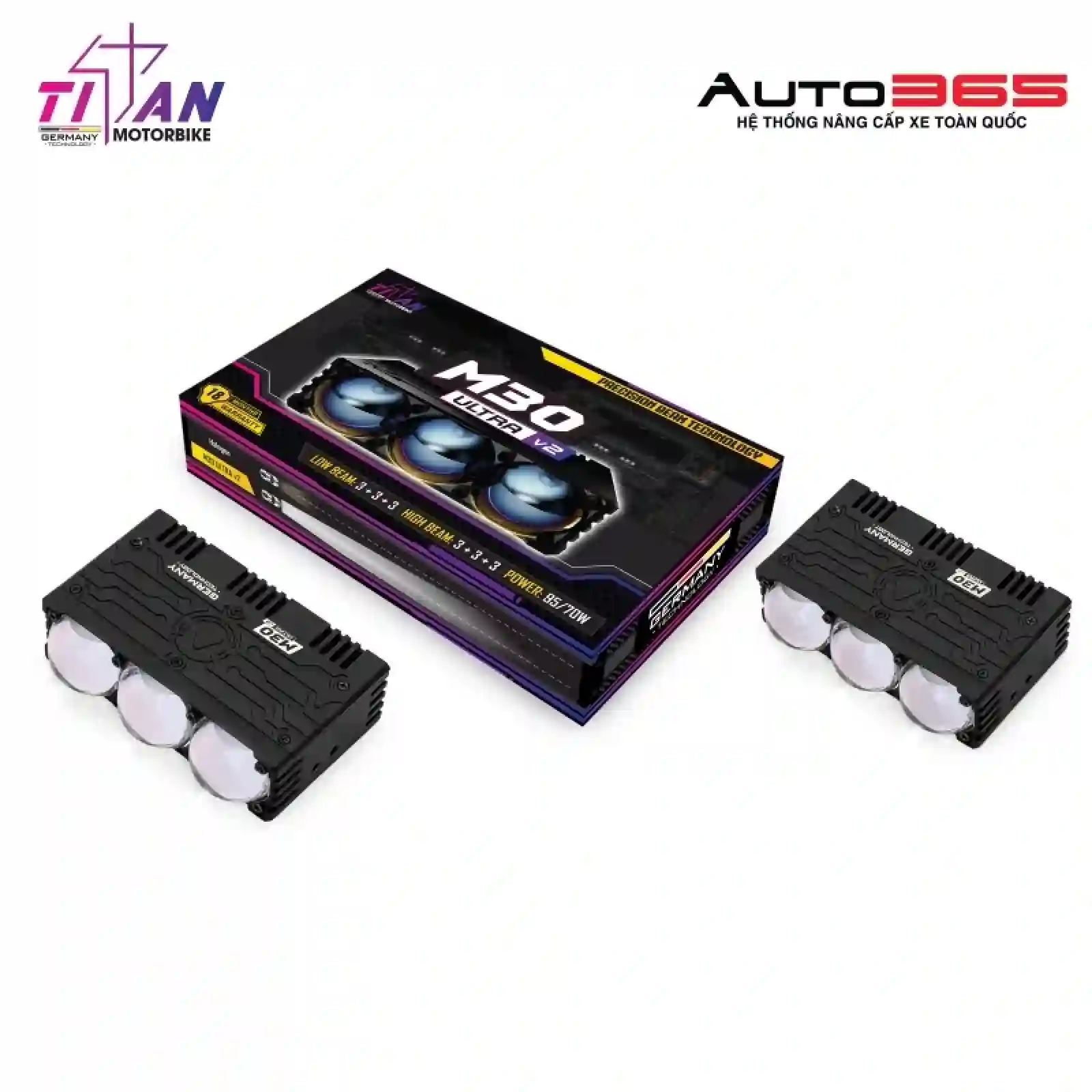 Auto365 Tây Ninh là đại lý ủy quyền chính hãng Titan Moto tại Tây Ninh, chuyên cung cấp và lắp đặt đèn trợ sáng cao cấp cho xe máy, moto. Với siêu phẩm M30 Ultra V2 ra mắt tháng 12/2025, chúng tôi mang đến giải pháp nâng cấp ánh sáng mạnh mẽ, an toàn và thời thượng nhất hiện nay cho biker khu vực Tây Ninh và lân cận.