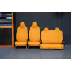 May đo hoàn hảo: Loại bỏ lớp nỉ cũ, may da mới đúng kích thước ghế.