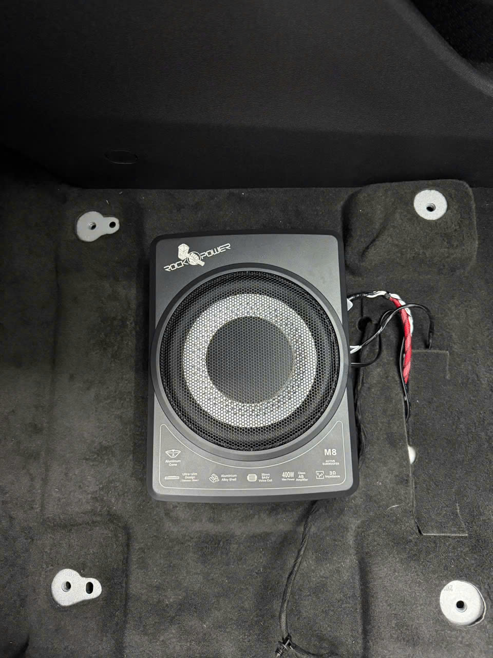 Subwoofer Rockpower M8 được tích hợp dưới gầm ghế với thiết kế gọn nhẹ. Công suất 400W Class AB mang đến dải âm trầm sâu, phản hồi nhanh, kiểm soát bass chính xác, làm trọn vẹn hệ thống âm thanh.